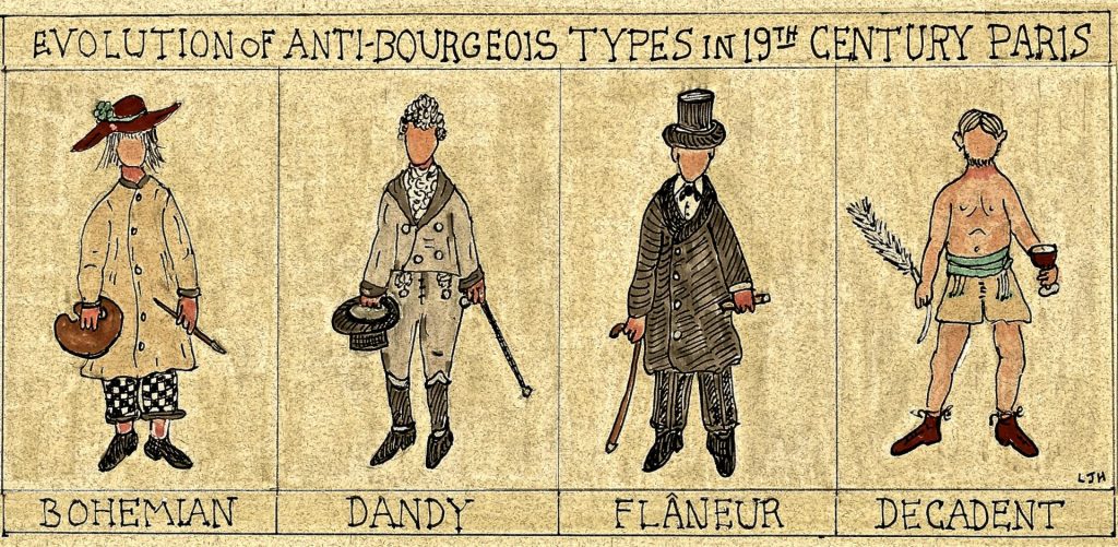 La figura del flâneur è stata resa celebre dal poeta Charles Baudelaire e indica quella particolare tendenza al vagare senza meta, in cerca di non si sa cosa, del semplice fluire della vita. In seguito, Walter Benjamin con i suoi Passages ha portato la discussione a livello ancora più filosofico e accademico e la flânerie è stata inoltre molto presente nella letteratura tedesca come in Walser e Bernhard fino a Peter Handke, seppur con accezione diversa rispetto alle dissertazioni baudelairiane, più legate all’oblio che all’amore per il paesaggio stesso.