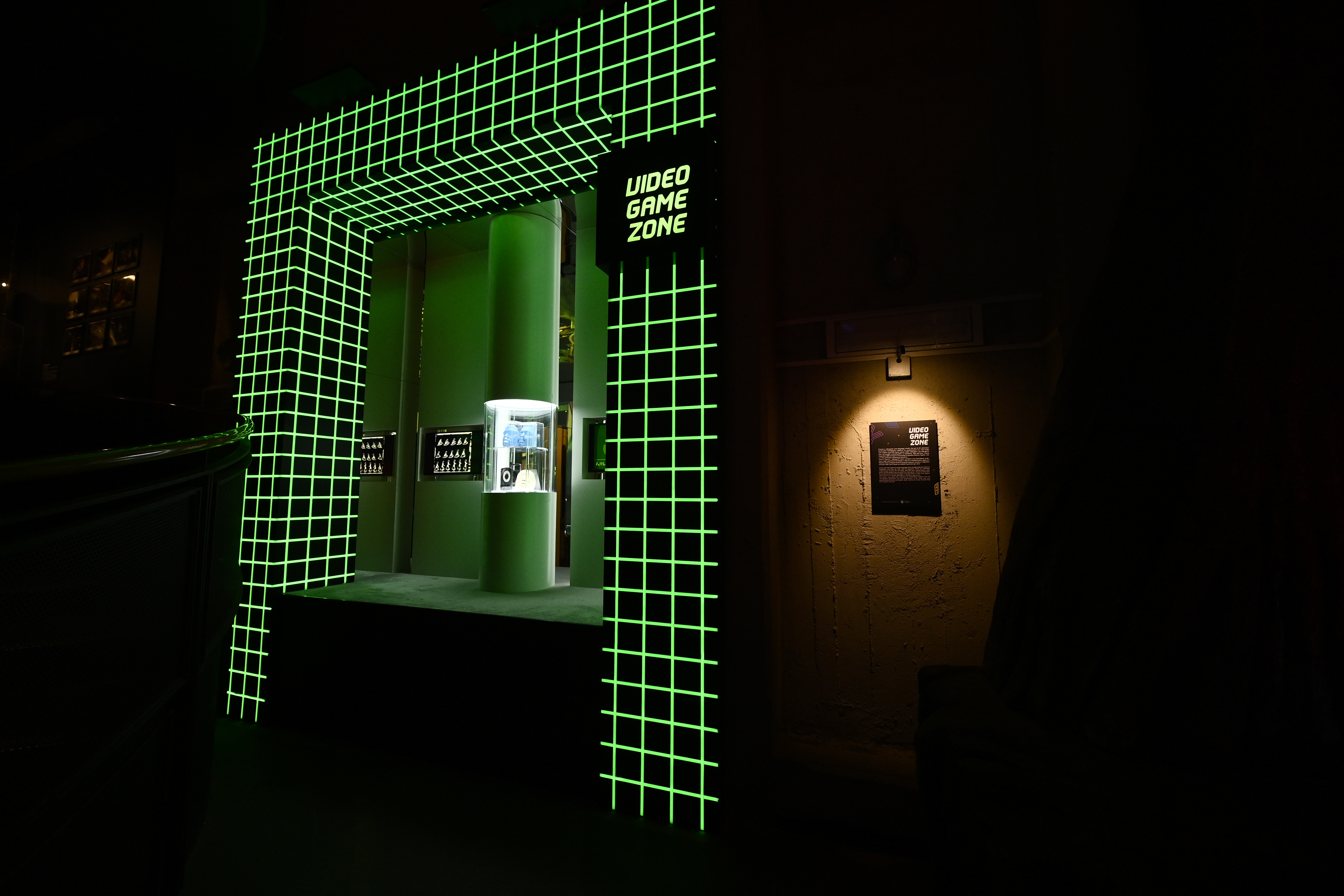 Anche per la ricchezza di questi materiali, si è inizialmente deciso di non presentare postazioni interattive e giocabili, bensì di offrire stimoli e spunti al visitatore che attraversa lo spazio. Nella Video Game Zone il pubblico può quindi vedere materiali inediti come sceneggiature, appunti, concept art e oggetti utilizzati nelle in-game cinematic, provenienti da una decina fra noti franchise e titoli indie, selezionati a partire dalla fine degli anni Ottanta, dal cosiddetto cinematic platform in cui il videogioco inizia ad acquisire complessità narrativa e tensione al realismo. Con particolare riferimento agli anni Novanta, infatti, il livello di profondità delle trame interne al videogioco, la qualità dell’aspetto estetico del mondo virtuale e della caratterizzazione di ambienti e personaggi, forniscono sempre più spessore e profondità al medium.