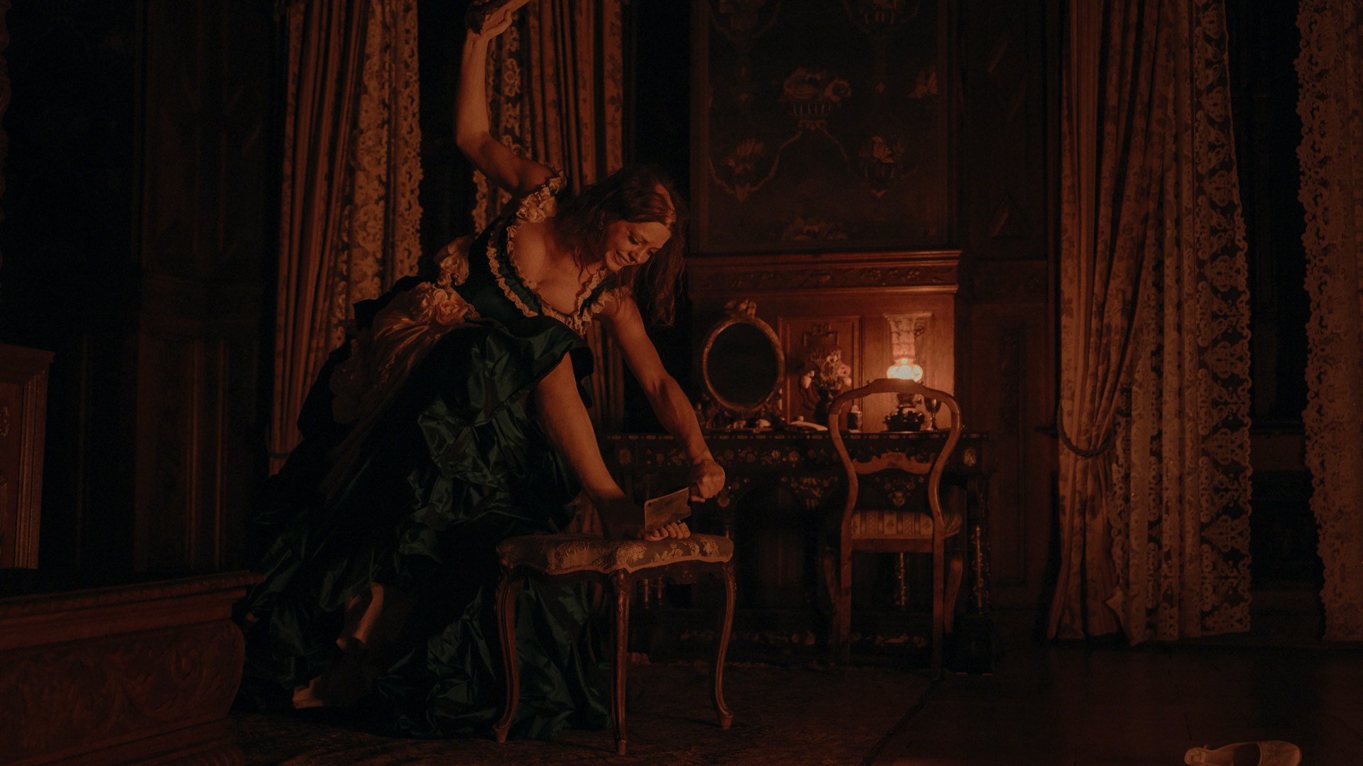 Se già la fiaba dei Fratelli Grimm presentava le prime inclinazioni verso il body horror – le sorellastre si mozzavano le dita dei piedi pur di poter indossare la famigerata scarpetta -, qui Blichfeldt testa più volte la sopportazione dello spettatore, specialmente con una lunga sequenza in cui ad Elvira sono cucite delle ciglia finte con un ago, mentre la sua pupilla trema per la paura.
