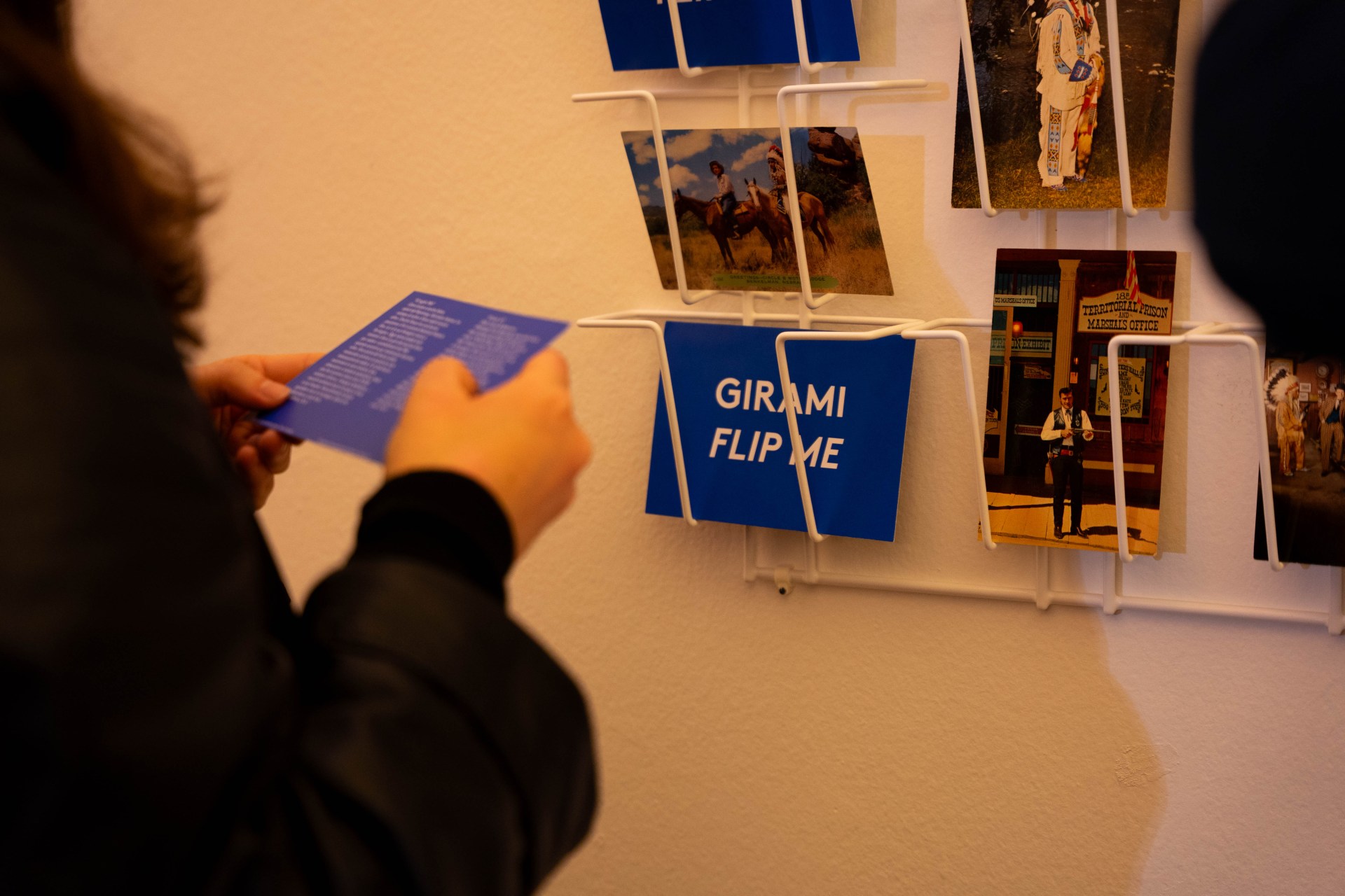 Mengotti, regista indipendente, ha realizzato già due documentari, West of Babylonia e Rosso di sera, ed è in fase di produzione del tuo terzo lavoro. La sua è una trilogia che esplora i luoghi del West degli Stati Uniti, un’osservazione che si spinge più che sul mito stesso, su cosa resta di quel sogno oggi. L’istallazione, che inevitabilmente dialoga con i documentari realizzati dal regista, raccoglie polaroid, cartoline, oggetti ritrovati in quei viaggi – un lavoro che mette al centro l’analogico, il tangibile, tra nostalgia, fascinazione e scoperta di una dimensione che sembra sospesa nel tempo.