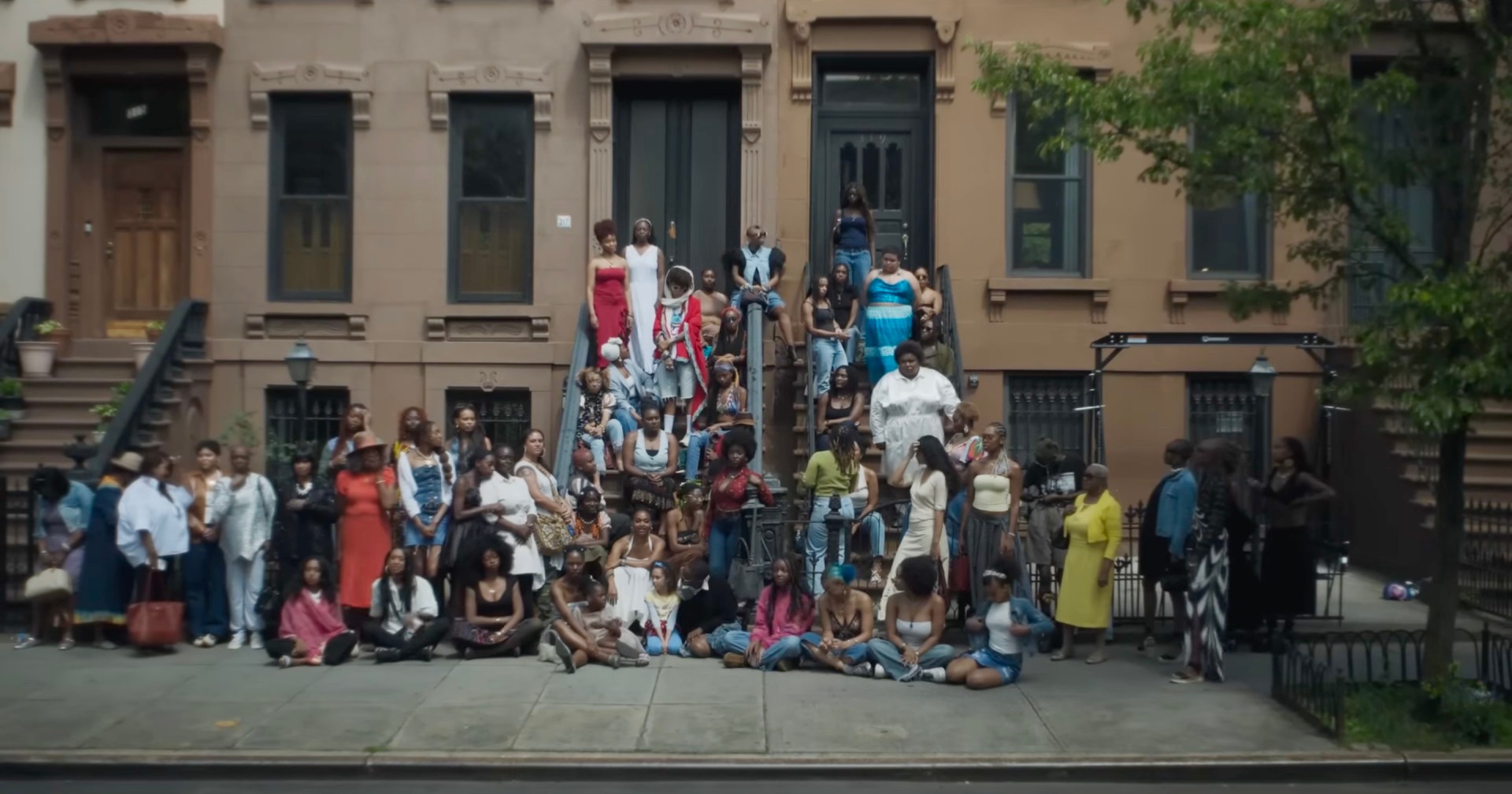 Vincolare il corto alla collezione di Miu Miu significa anche trovare soluzioni per adattare i capi al messaggio su cui si vuole insistere. È quello che fa per esempio Alice Diop, che in Fragments for Venus (2025) veste Kayije Kagame con un abito dorato, lo stesso colore delle cornici dei quadri di artisti bianchi che ritraggono donne bianche, appesi alle pareti del Louvre. Con il suo corto Diop vuole riparare un tipo di rappresentazione deformata, a cui si conformano spesso, a sua detta, anche le artiste nere. Si ispira al poema Voyage of the Sable Venus della poeta Robin Coste Lewis per portare sullo schermo tredici modi di guardare una ragazza nera, e ricompone in una delle inquadrature la celebre fotografia di Art Kane “A Great Day in Harlem” (1958), portando in rilievo le varie filature artistiche che compongono la trama cinematografica. Una trama simile tiene insieme i corti della collezione: che sia l’abito a determinare la struttura del corto o viceversa, i diversi approcci delle registe contribuiscono a creare un archivio in cui la conversazione tra le arti e tra i corti stessi rimane sempre viva.